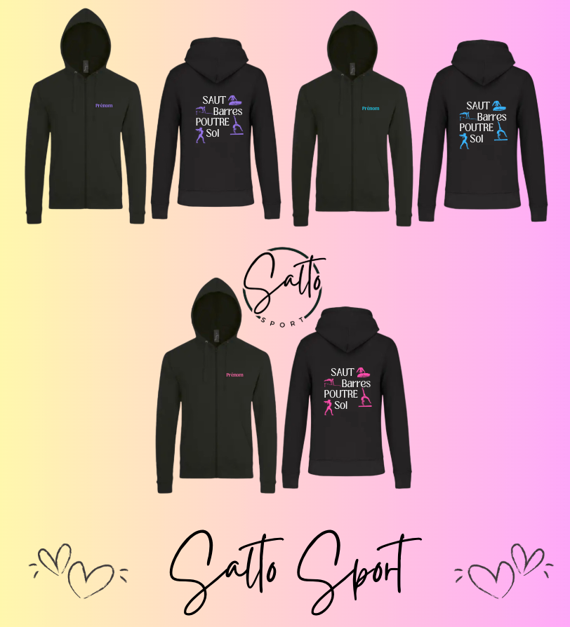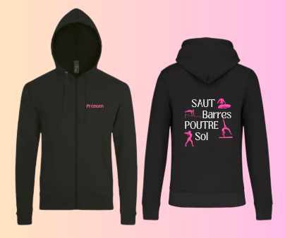 Sweat zIppé a capuche COLLECTION 4 agrès texte